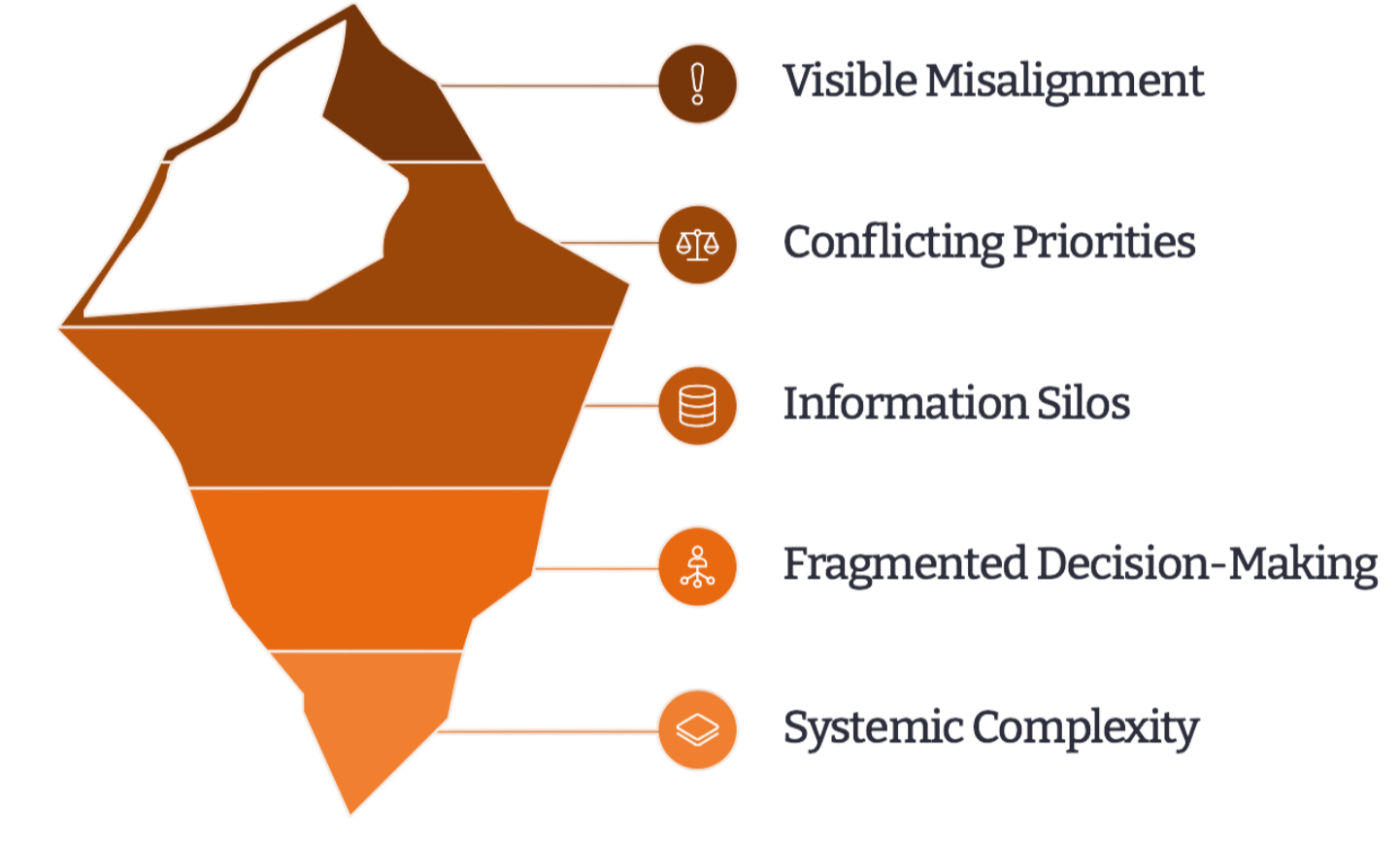 Even when leadership alignment exists, execution often breaks down as initiatives move across teams and functions.